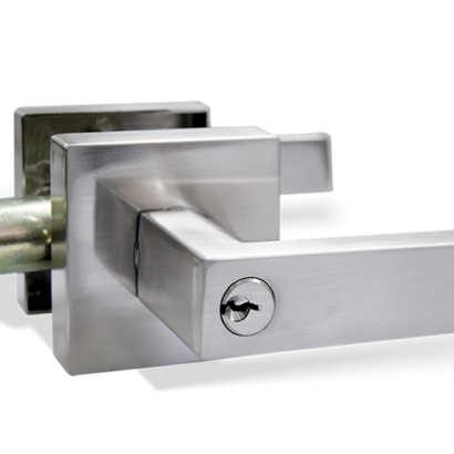 Manija cuadrada tubular para puertas en aluminio y madera, ideal para alcoba, baño y entrada.